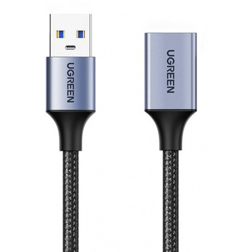 Удължителен USB-A кабел с въжена оплетка (200 см) - Ugreen USB-A 3.0 Male to USB-A 3.0 Female Extension Cable (тъмносив)