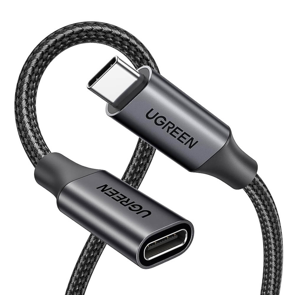 Удължителен USB-C кабел - Ugreen Extension Cable USB-C Male to Female 100W (50 см) (черен)