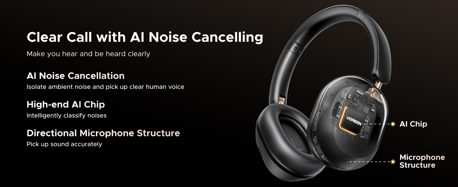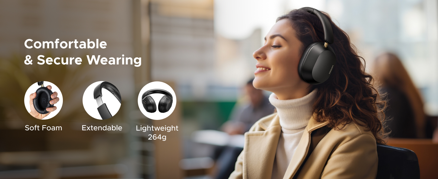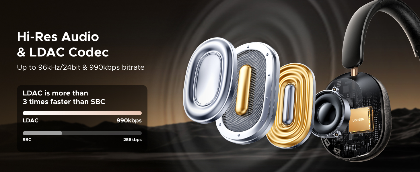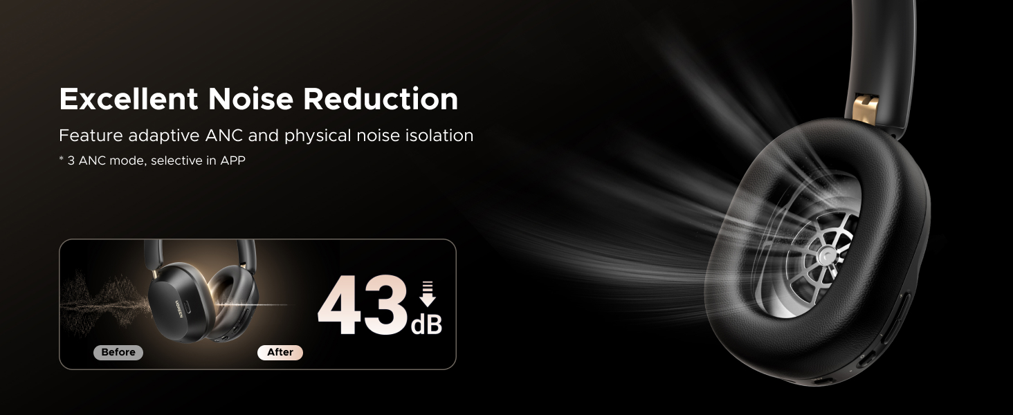 USB C Wired Audio & Charging: UGREEN Over-ear Bluetooth Headphones features a USB-C port for fast charging and audio input. Use the included USB C to USB C cable to connect this wireless earphones to a phone/tablet/laptop for charging or wired audio connection. The USB-C port also supports Hi-Res audio. Designed with physical buttons for intuitive control of playback, volume, ANC modes.