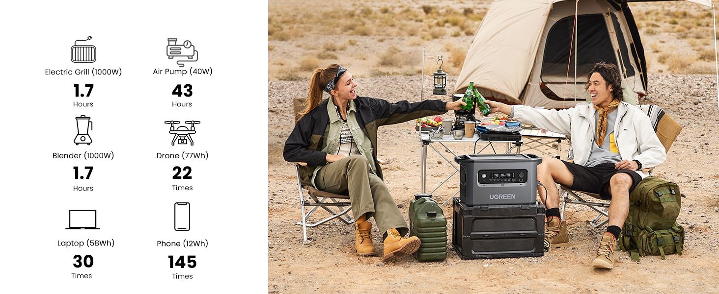 - 10-Year Battery Lifespan: The advanced LiFePO4 EV-rated batteries provide a 6X longer service life compared to traditional lithium-ion battery, Ugreen PowerRoam 2200 is designed to power your devices every day for 10 years.