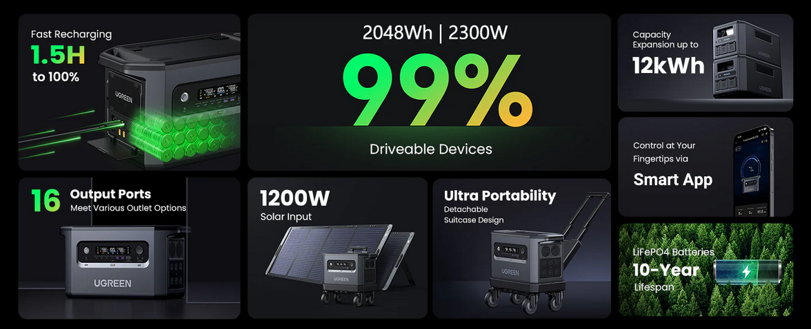 - Smart APP Control: Download the UGREEN app which gives you all the information you need, and controls your PowerRoam 2200 anytime and anywhere.