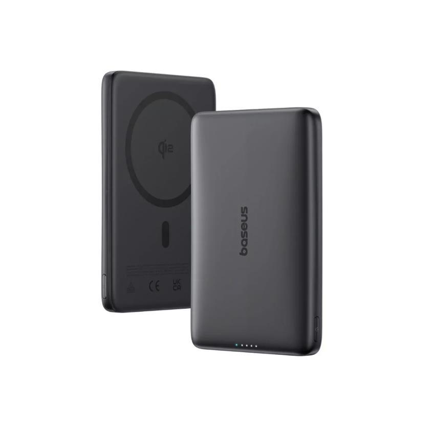 Ултратънка преносима външна батерия с USB-C изход и безжично зареждане с MagSafe - Baseus PicoGo AM41 Ultra Slim Qi2 Magnetic Wireless Charging Power Bank 10000 mAh 27W (черен)