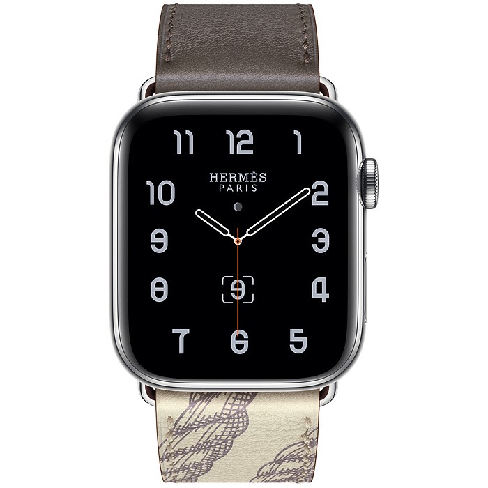 В комплекта: - Apple Watch 44mm стоманен корпус - M/L Hermès спортна каишка - Apple Watch Hermès кожена каишка - 5W USB адаптер за захранване - магнитен USB кабел за зареждане