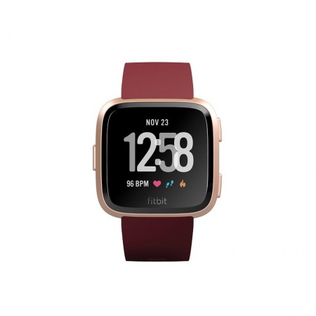 Умен фитнес часовник с известия и следене на дневната и нощна активност на организма за iOS, Android и Windows Phone - Fitbit Versa (NFC) (червен-розово злато)
