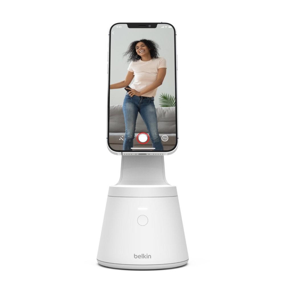 Умна поставка за мобилни устройства, която следи движенията ви - Belkin Magnetic AI Face Tracking Mount (бял)