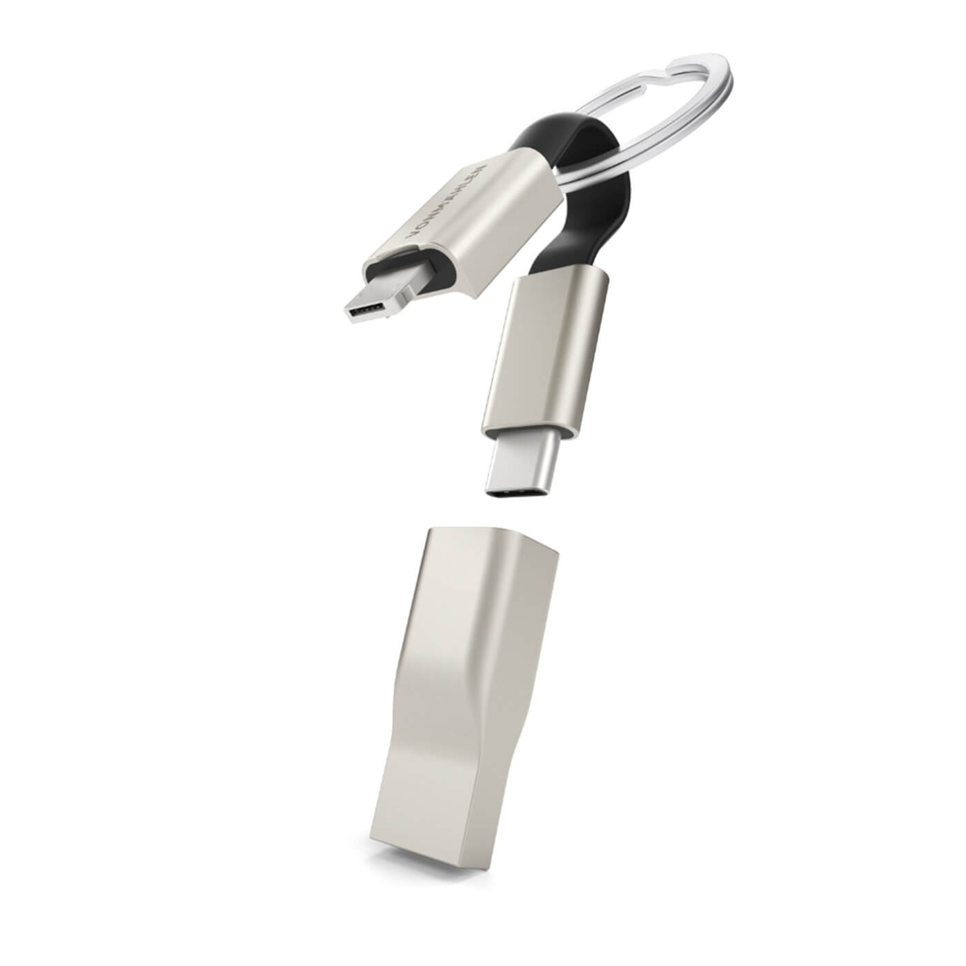На практика кабелът представлява microUSB/Lightning към USB-C кабел, с включен към него адаптер от microUSB женско към USB мъжко и от USB-C женско към USB мъжко, като така на практика имате кабел "от всичко към всичко"