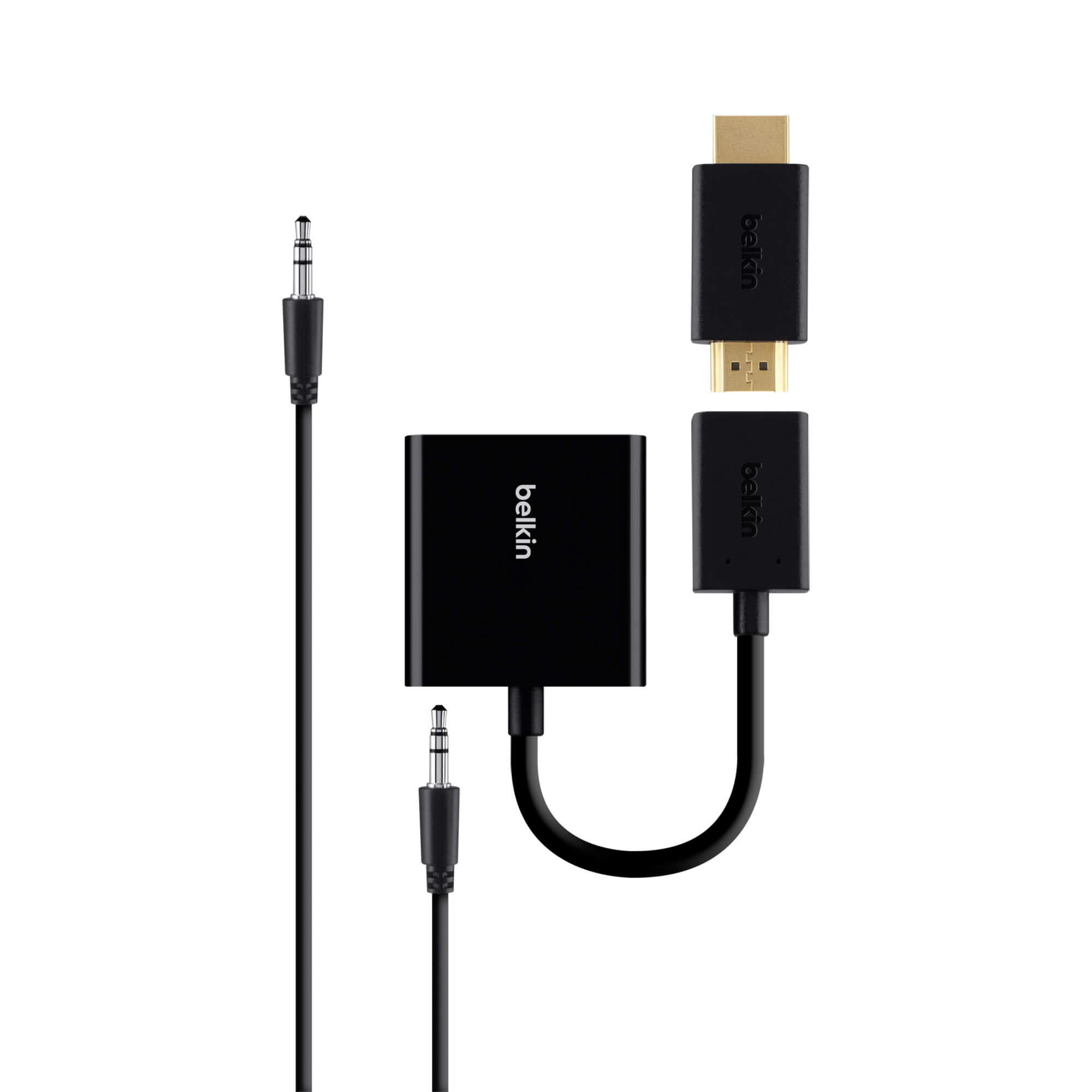 В комплекта - 1 x Belkin Adapter HDMI-F to VGA-F - 1 x 3.5 мм аудио кабел - 1 x HDMI-M/HDMI-M адаптер