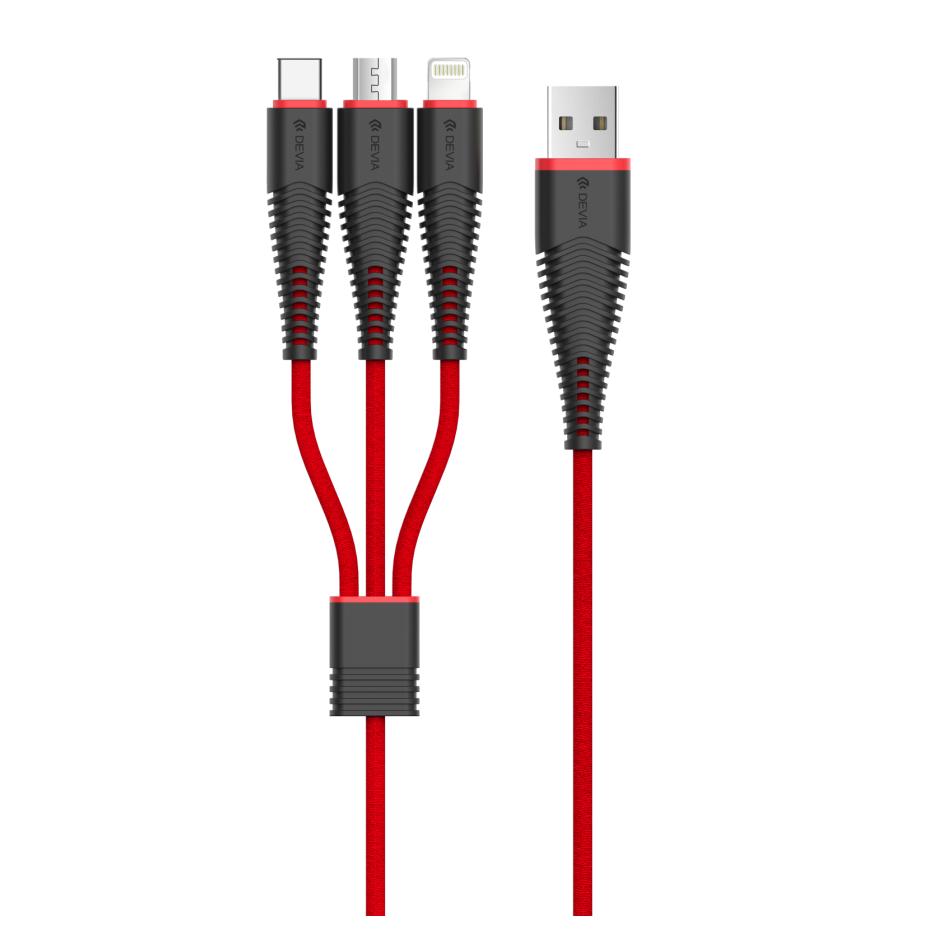 Качествен текстилен кабел с дизайн на рибена кост с Lightning, MicroUSB и USB-C конектори