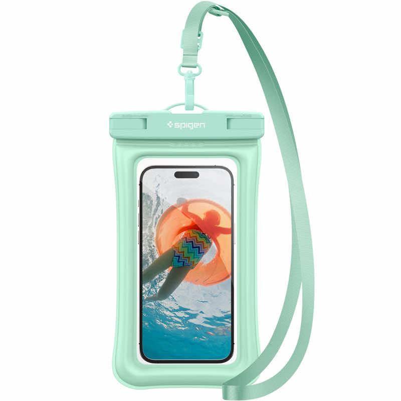 Универсален водоустойчив калъф за смартфони до 6.9 инча - Spigen Aqua Shield A610 Universal Waterproof Floating Case IPX8 (зелен)
