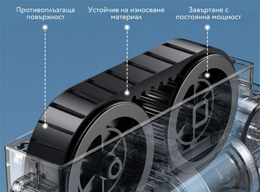 - Изкуствен интелект – Интелигентно планира почистващия път като осигурява последователно почистване на цялата повърхност, без да пропуска участъци.
