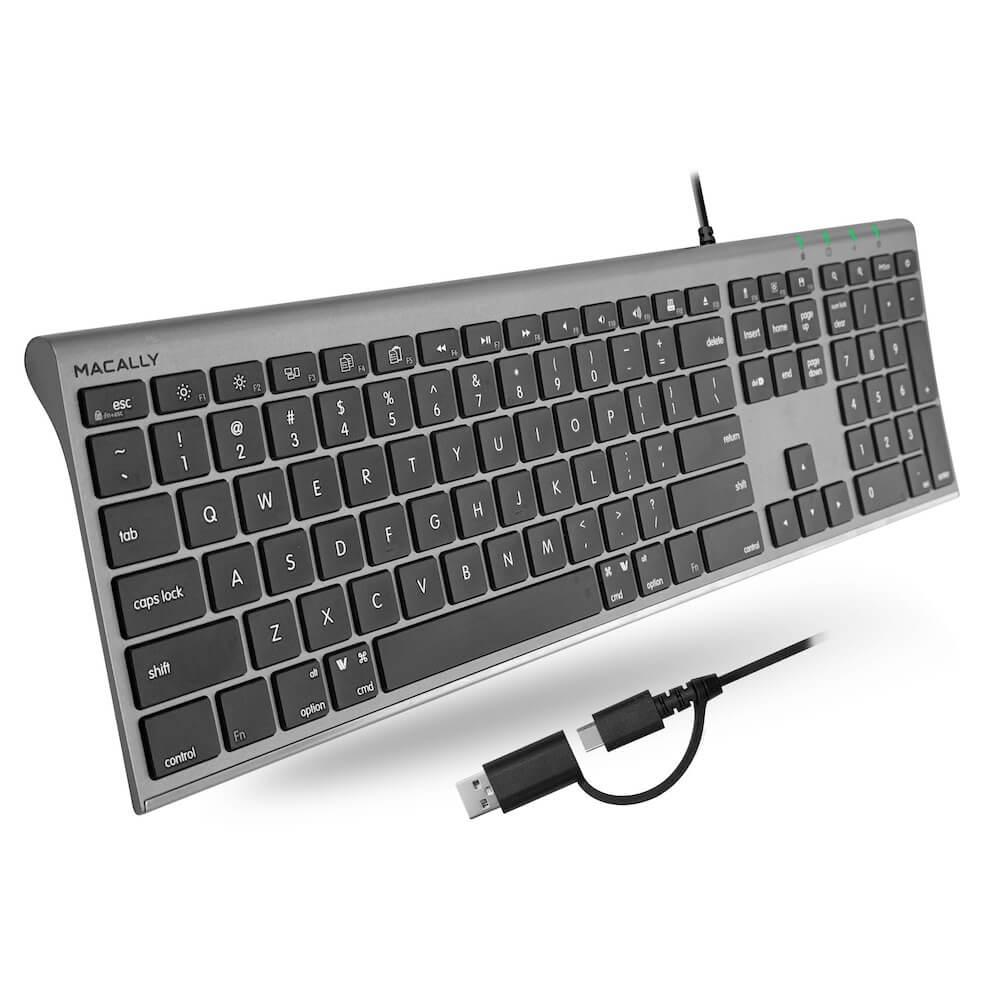 USB-C клавиатура оптимизирана за Mac - Macally Aluminum USB-C Wired Keyboard With USB-A Adapter US (тъмносив)
