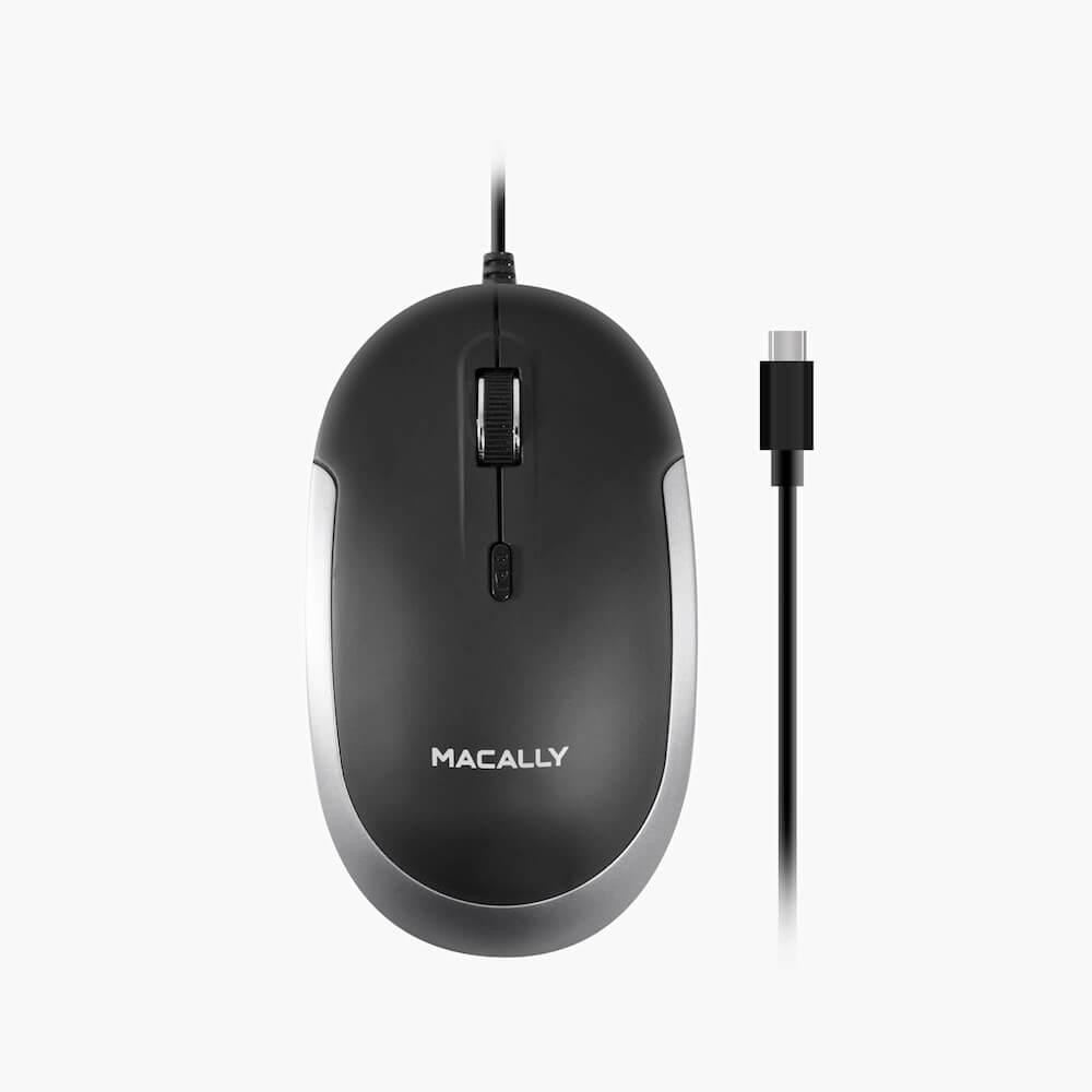 USB-C оптична мишка за PC и Mac - Macally USB-C Optical Quiet Click Mouse (черен-сив)