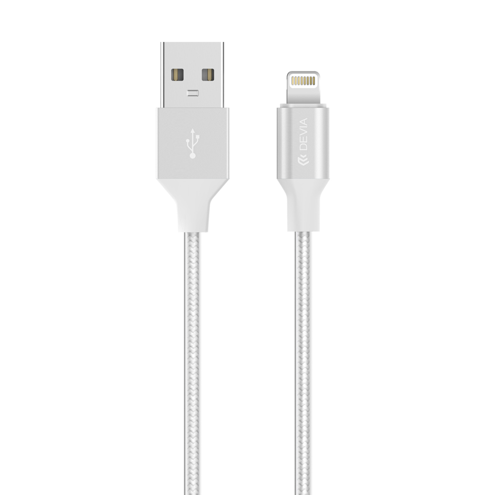 USB кабел за iPhone 8, iPhone 7 и Apple продукти с Lightning вход - Devia Gracious Aluminum Lightning USB Cable (бял)