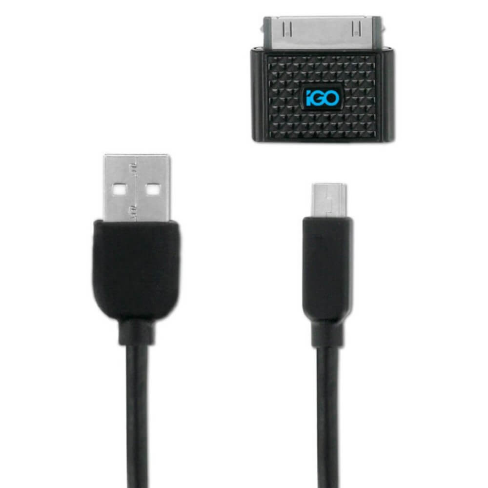В комплекта: - iGo microUSB кабел (120 см) - microUSB към miniUSB адаптер - microUSB към 30-pin Apple Dock адаптер