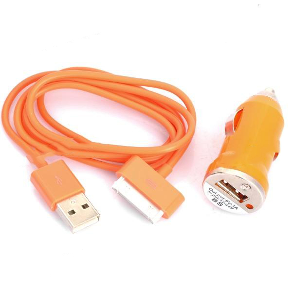 USB зарядно и кабел за кола за iPhone 4S и iPod (оранжев)