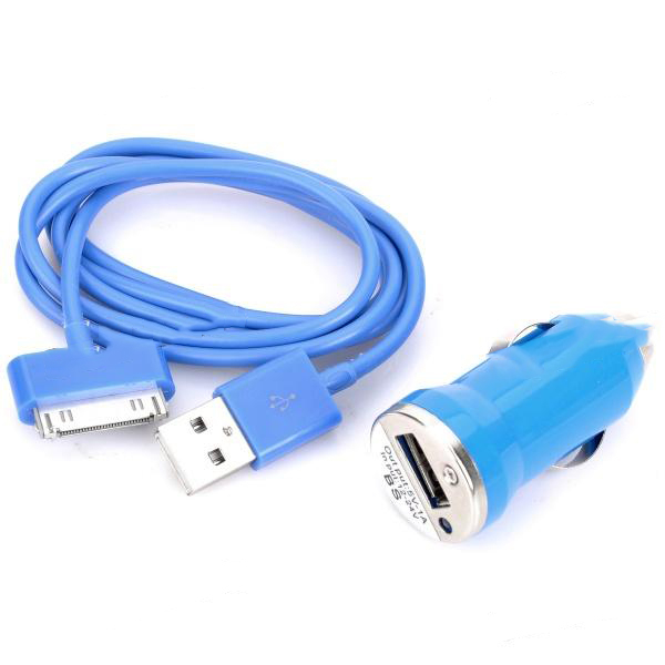 USB зарядно и кабел за кола за iPhone 4S и iPod (син)