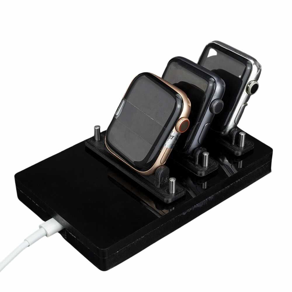 Позиционира и задържа сигурно Apple Watch, така че да стои неподвижно по време на процеса