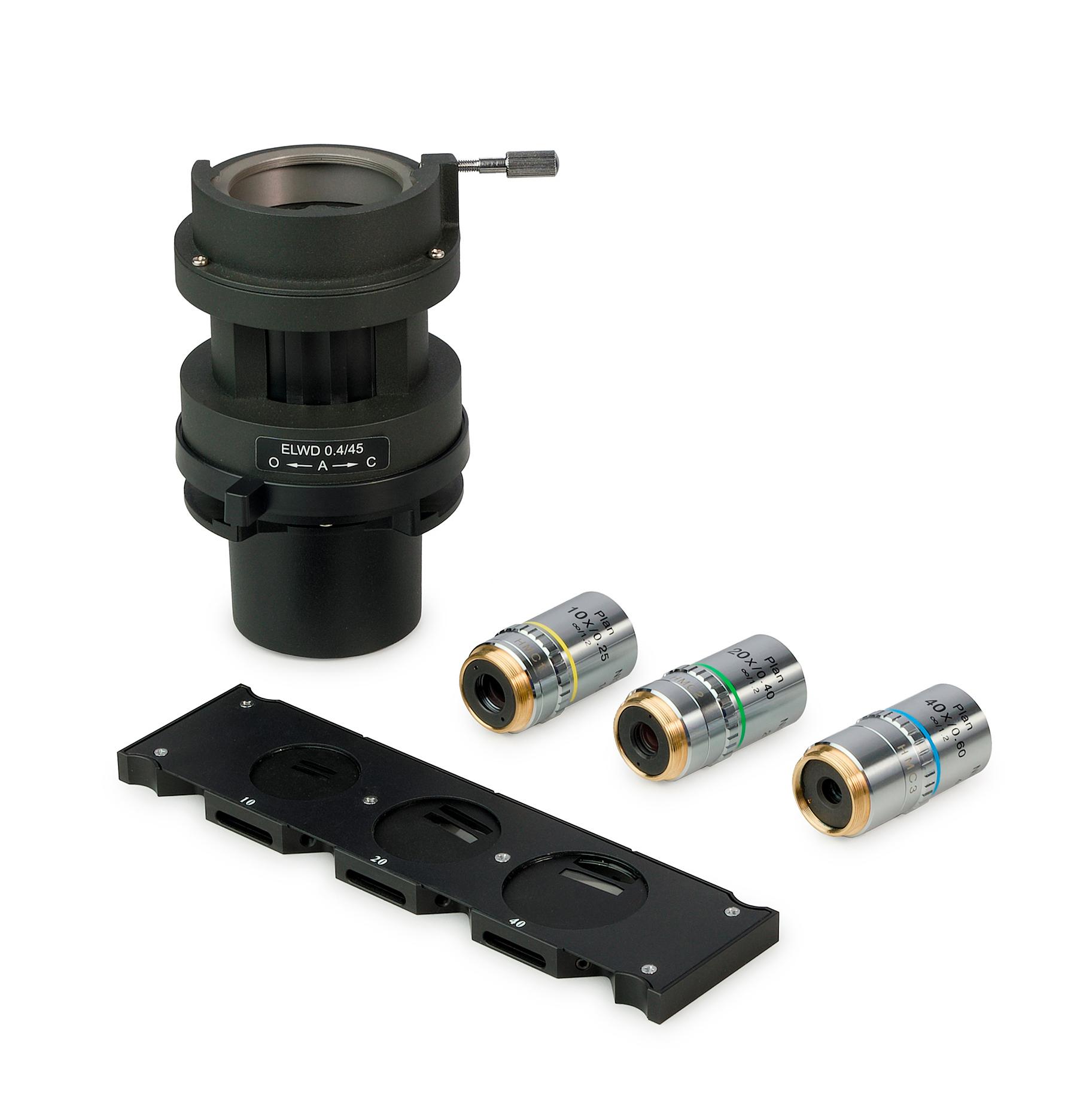 <li>Планахроматичен обектив на Хофман с корекция до безкрайност: 40x/0,60 ∞/1,2, парфокално разстояние: 60 mm</li>