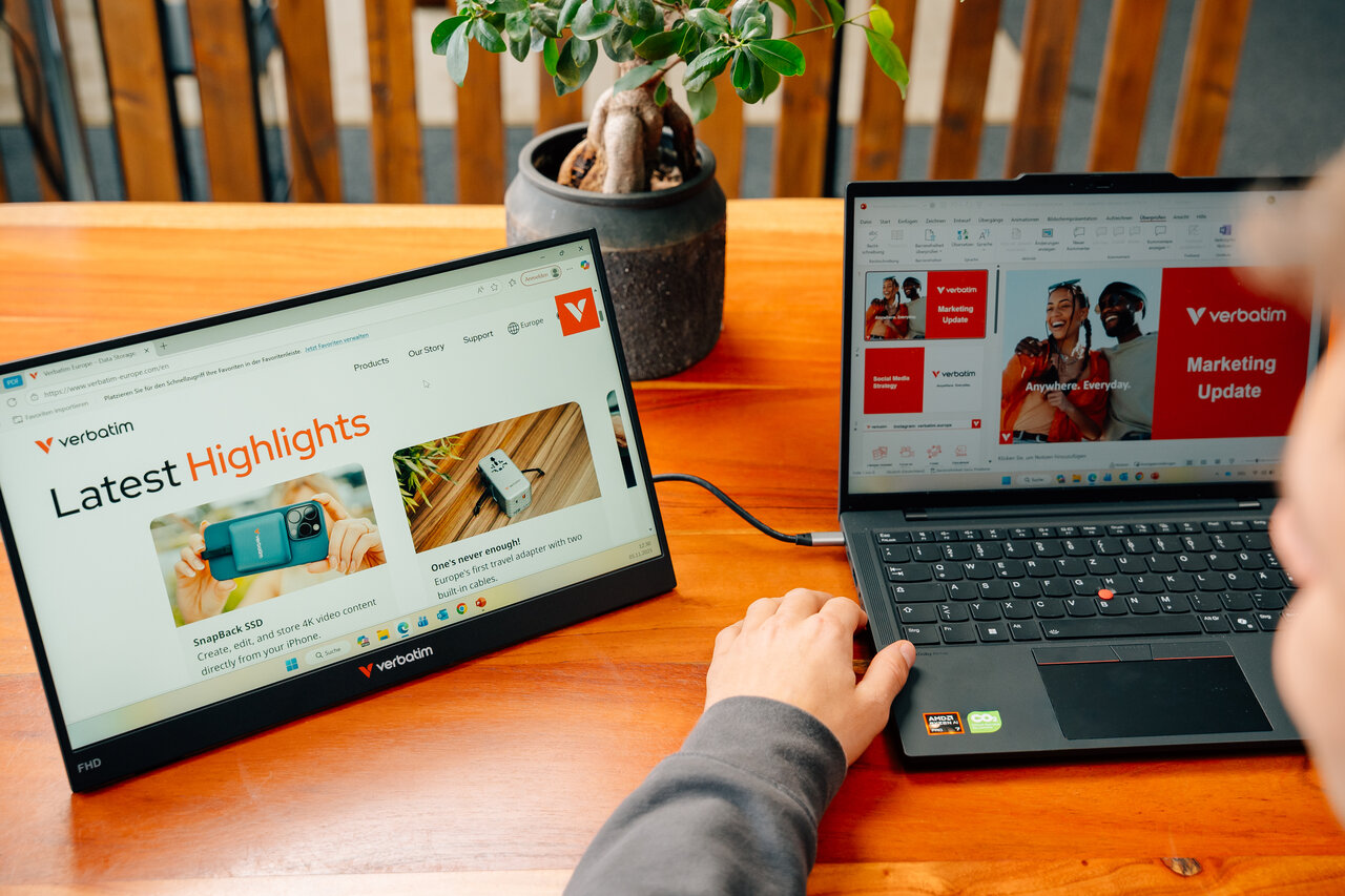 Experience effortless control with the Verbatim LIGHT Series 15.6” Touchscreen Portable Monitor. With full 10-point capacitive multi-touch functionality, this compact display lets you swipe, tap, zoom, and draw directly on the screen, making it ideal for designers, professionals, and students alike. The plug & play USB-C connection streamlines your setup – one cable handles power, video, and touch input with ease.