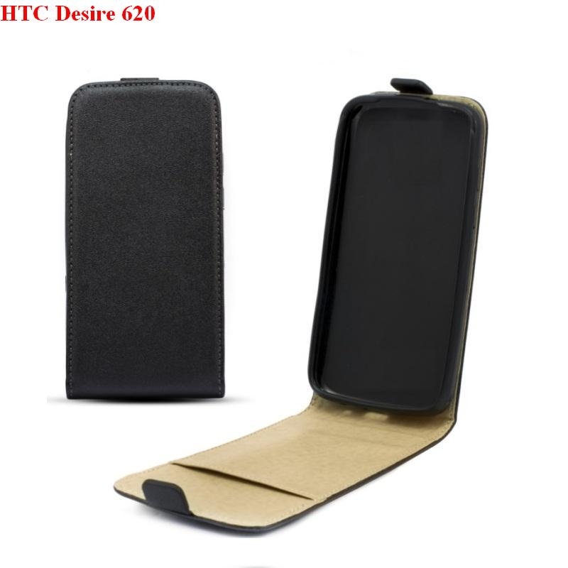 Вертикален кожен калъф с джоб за HTC Desire 620 - Leather Pocket Flip Case (черен)