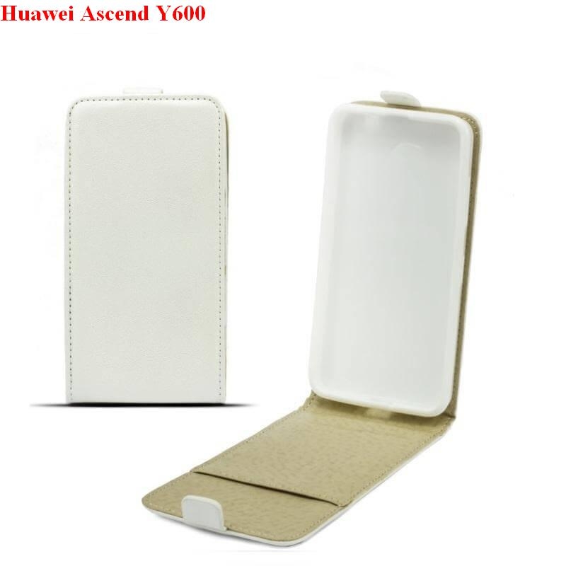 Вертикален кожен калъф с джоб за Huawei Ascend Y600 - Leather Pocket Flip Case (бял)