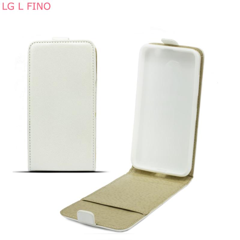 Вертикален кожен калъф с джоб за LG L Fino - Leather Pocket Flip Case (бял)