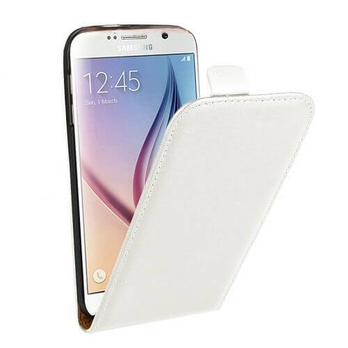 Вертикален кожен калъф с джоб за Samsung Galaxy S6 Edge Plus - Leather Pocket Flip Case (бял)
