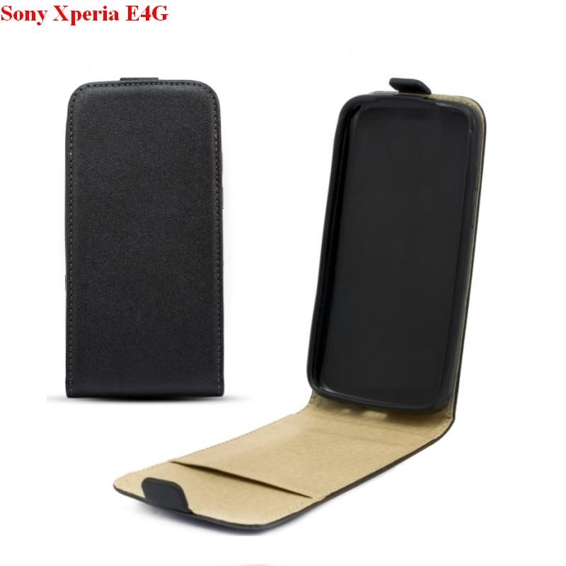 Вертикален кожен калъф с джоб за Sony Xperia E4G - Leather Pocket Flip Case (черен)