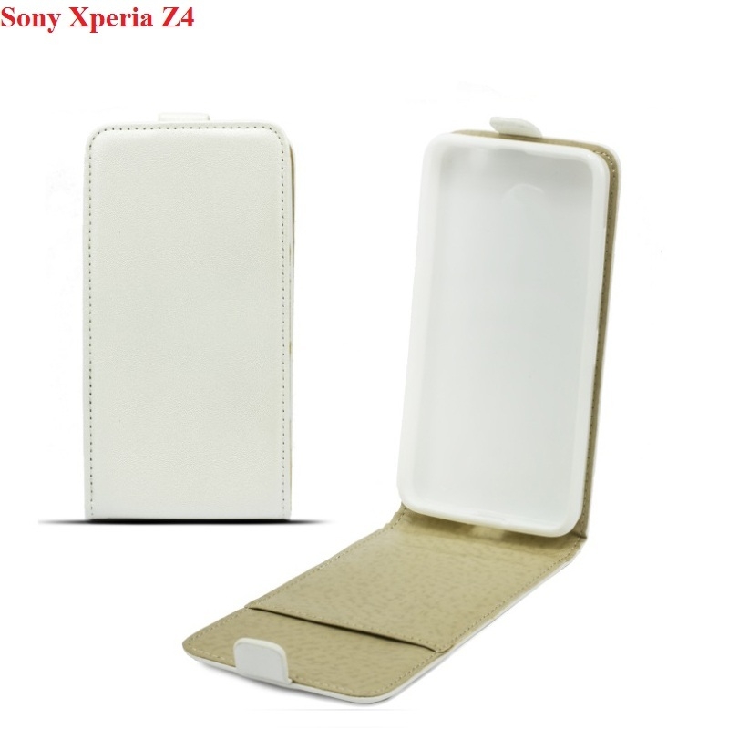 Вертикален кожен калъф с джоб за Sony Xperia Z4, Xperia Z3+ - Leather Pocket Flip Case (бял)
