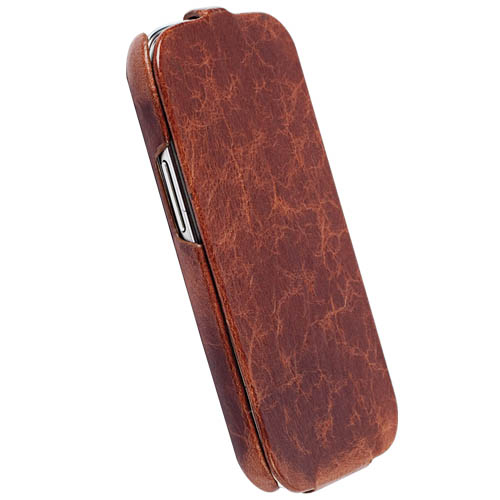 Вертикален кожен калъф с капак за Samsung Galaxy S3 i9300 - Krusell Tumba SlimCover (кафяв)