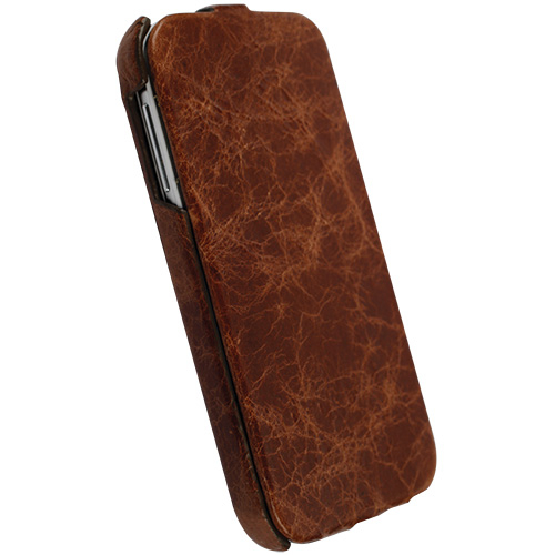Вертикален кожен калъф с капак за Samsung Galaxy S4 i9500 - Krusell Tumba SlimCover (кафяв)