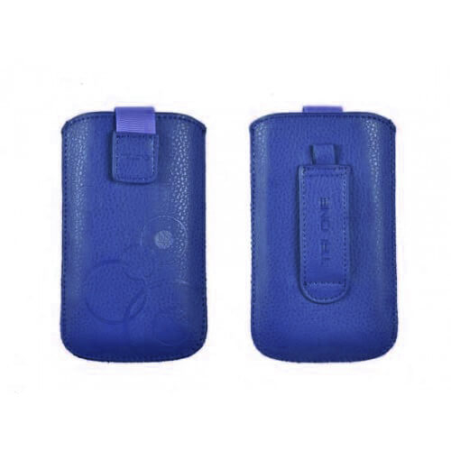 Вертикален кожен калъф, тип джоб с лента за издърпване за iPhone 6 Plus, iPhone 6S Plus, Samsung Galaxy Note 4 и други - Telone Deko 1 Pouch Size 17 (син)