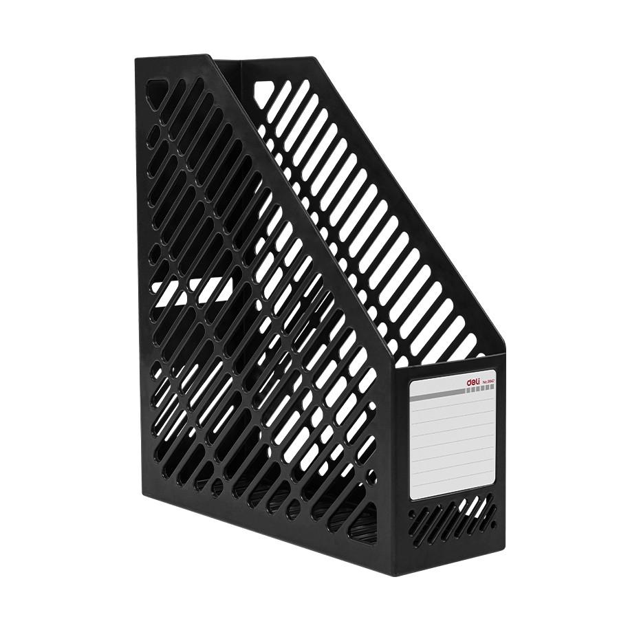 Вдъхновете работното си място с вертикалната поставка Deli! • Компактен размер: 259x90x293 мм – идеална за всеки бюро.• Изработена от здрав HIPS материал за дълготрайна употреба.• Стилен черен дизайн, който придава елегантност и професионализъм.Подредете документите си с лекота и внесете ред и стил във вашия офис!