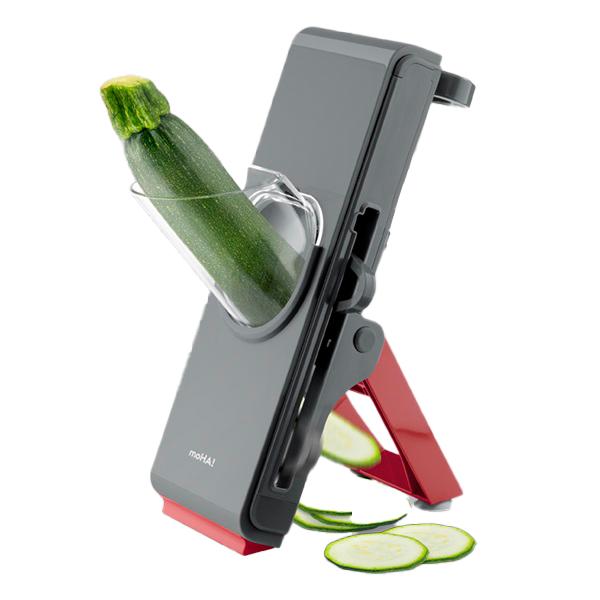 Vertico е нов зеленчуков резец с напълно иновативен дизайн. Благодарение на вертикалната позиция и бутона за натискане, той ви предлага абсолютна безопасност без риск от нараняване, когато режете любимите си зеленчуци или плодове.