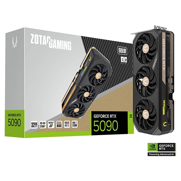ZOTAC GAMING GeForce RTX 5090 SOLID OC е овърклокната версия на SOLID модела, предлагайки още по-висока производителност за гейминг и творчество. Ето какво я отличава: