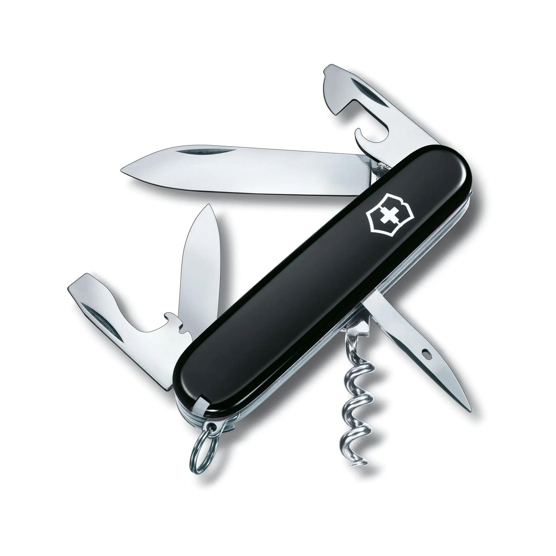 • Функции: Голямо острие; малко острие; комбиниран инструмент 1: отварачка за бутилки, плоска отвертка, зачистване/огъване на кабели; комбиниран инструмент 2: отварачка за консерви, малка отвертка; тирбушон; шило с конусовидно свредло/разширител, клечка за зъби; пинсети; халка за ключодържател или верижка.