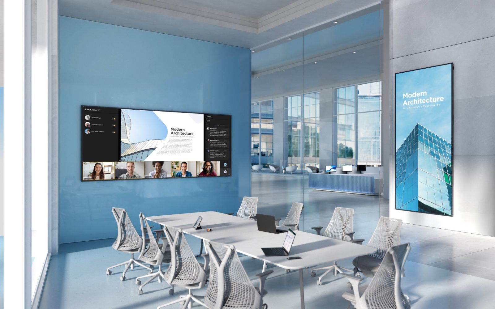- 21:9 aspect ratio optimized for Microsoft Teams Rooms Front Row mode.