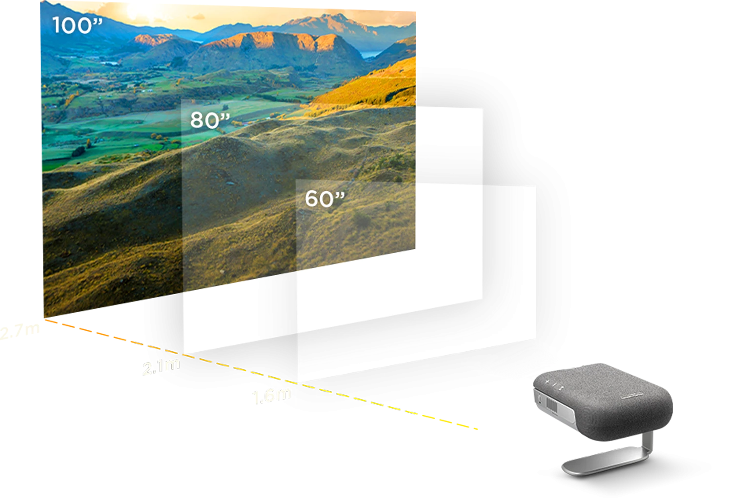 Bring the magic of the big screen anywhere, from your bedroom to a rooftop or even a skate park! The M1S projector can display a 60" screen from just 1.6 meters away, and an impressive 100" screen at 2.6 meters, effortlessly transforming any location into an extraordinary cinematic experience.