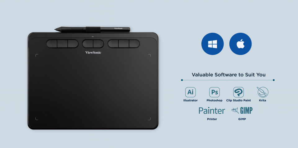 Compatible with Windows and Mac, and work closely on various maintream design and drawing software such as Adobe Illustrator, Adobe Photoshop, Clip Studip.