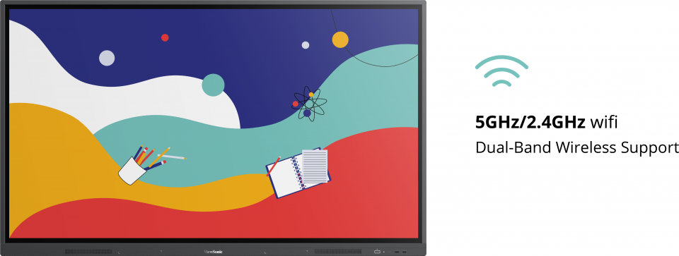 Supported by both 2.4 GHz and 5 GHz dual-band wireless transmission, teachers can smoothly stream multimedia content such as videos and images without any delays and create higher student engagement. The 2.4 GHz connection travels farther at lower speeds, while 5 GHz frequencies provide faster speeds at a shorter range.