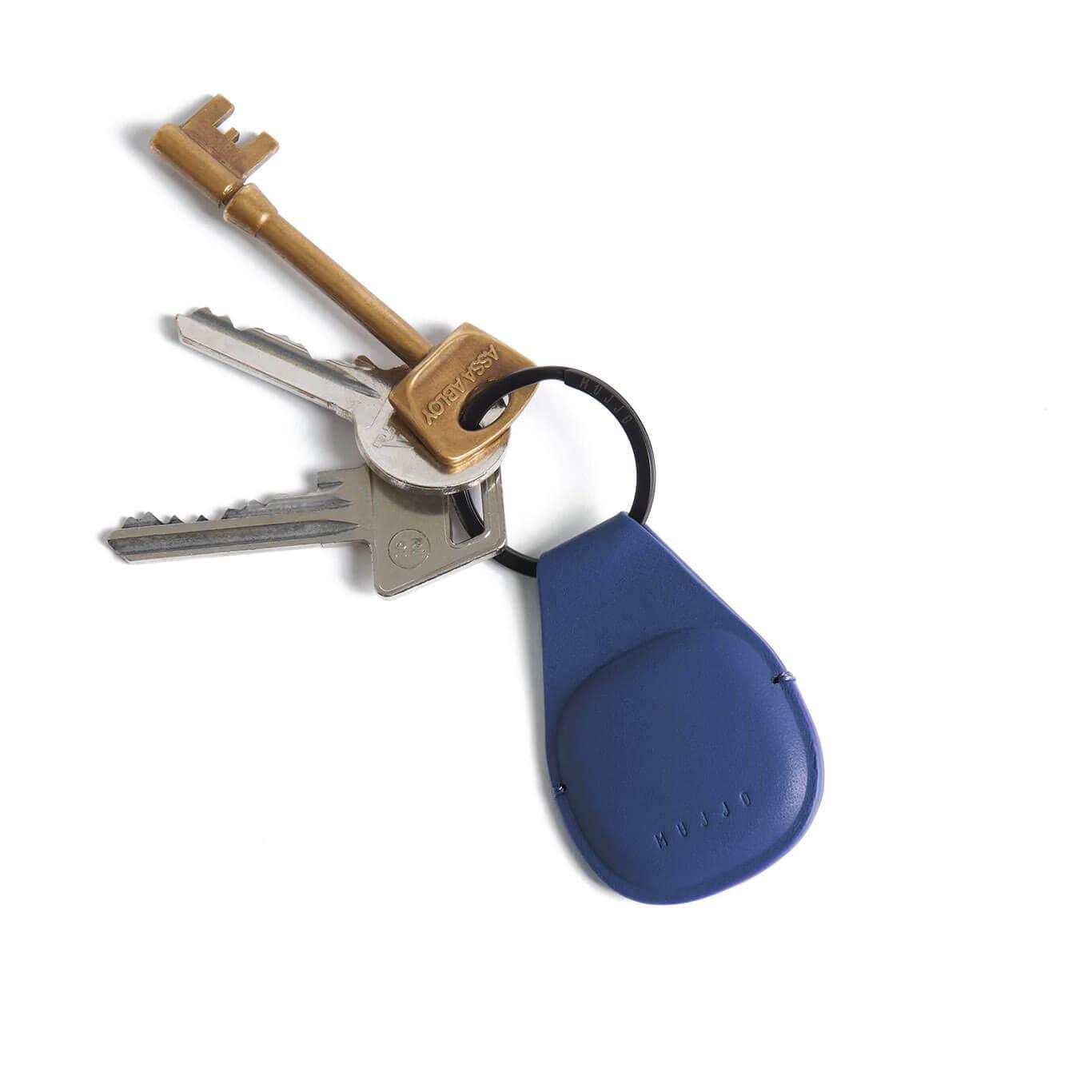 Висококачествен ключодържател от естествена кожа за Apple AirTag - Mujjo Canopy AirTag Keychain (син)