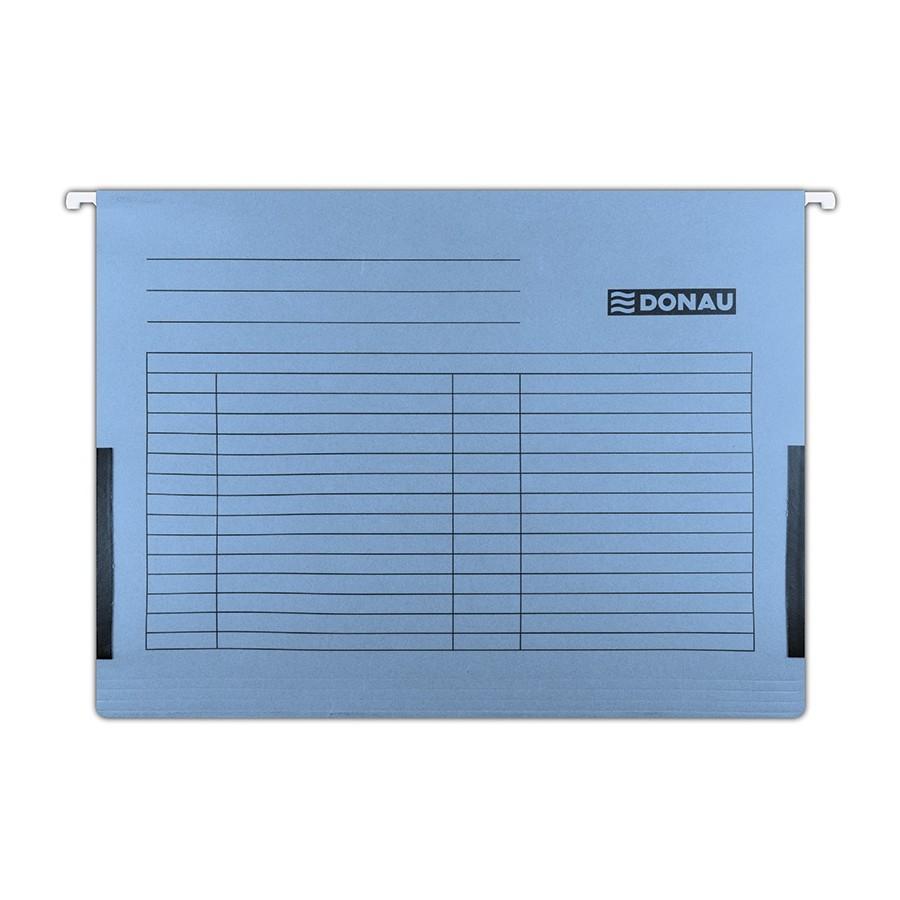 Висяща папка за картотека DONAU, без машинка, с ограничител и метални шини, картон 230 г, синя