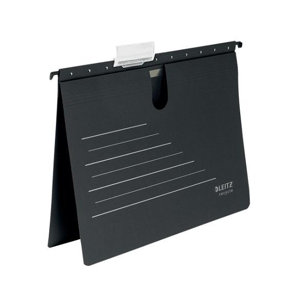 Висяща папка за картотека LEITZ Alpha Recycle, с машинка и метални шини, рециклиран картон, черна