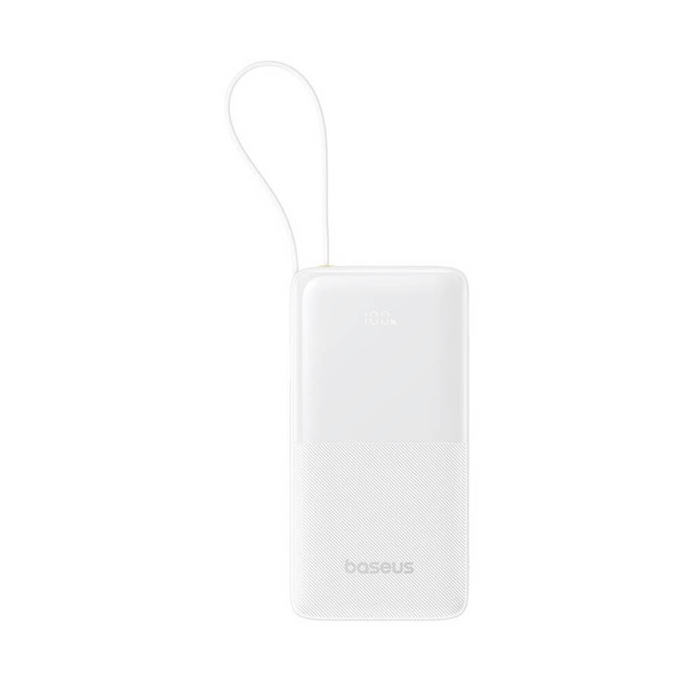 Външна батерия 10000 mAh с вграден USB-C кабел и 1xUSB-C, 1xUSB-A портове - Baseus Bipow 2 Digital Display Power Bank With USB-C Cable 20W 10000mAh (бял)