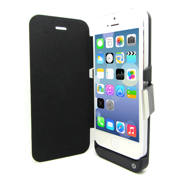 Тънък и компактен кейс-батерия с поставка за iPhone 5S, iPhone 5