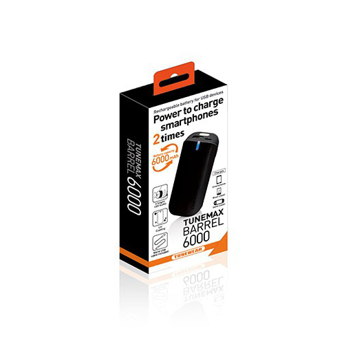 В комплекта: - TUNEMAX Barrel 6000 mAh - microUSB кабел - чантичка за съхранение