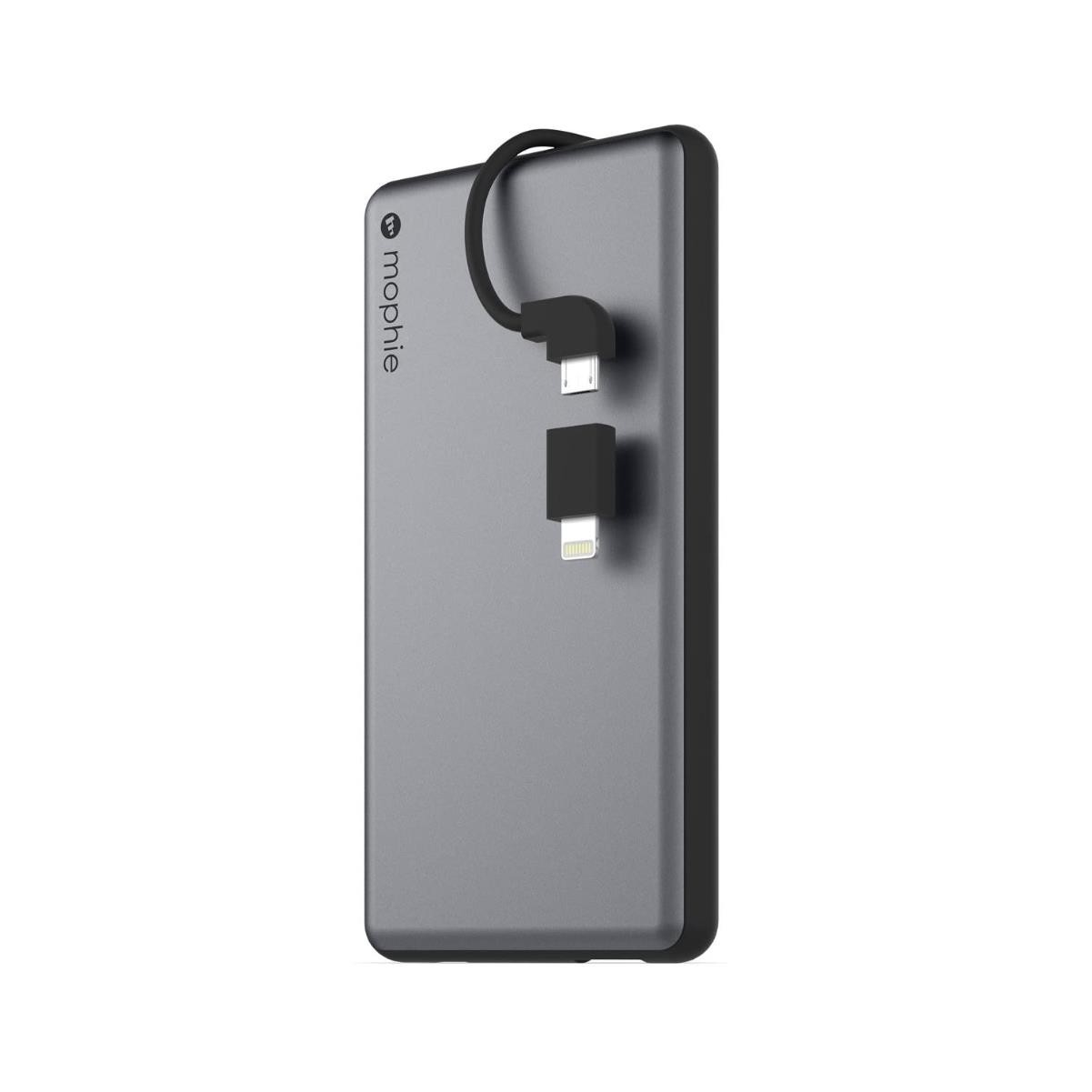 Външна батерия с вградени Lightning и MicroUSB кабели и допълнителен USB-A изход за зареждане на мобилни устройства