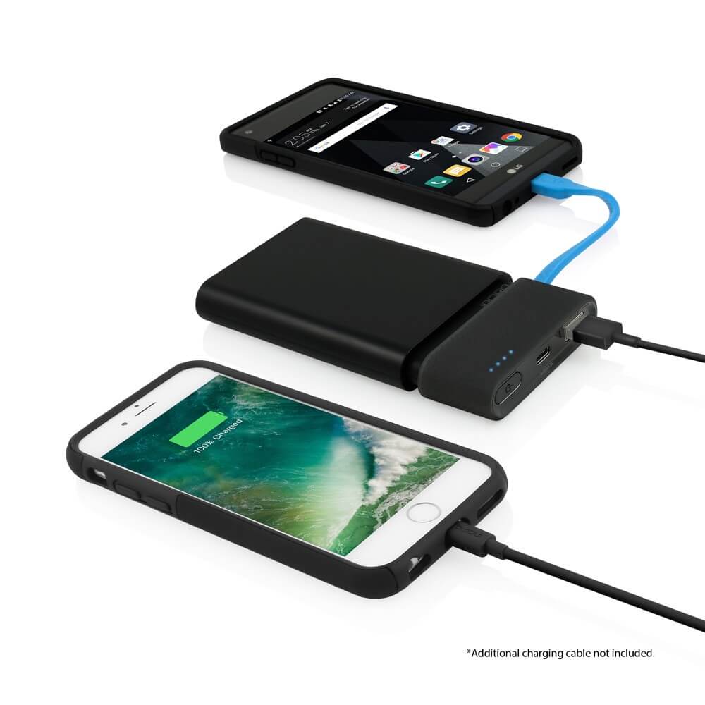 Както винаги 2 е повече от 1. Портативната Incipio® 8000mAh offGRID външна батерия ви предлага възможност за двойно зареждане, с вградени USB-C кабел, USB-C порт (за зареждане на батерията) и традиционен USB портове, даващи ви възможност да заредите устройството си няколко пъти