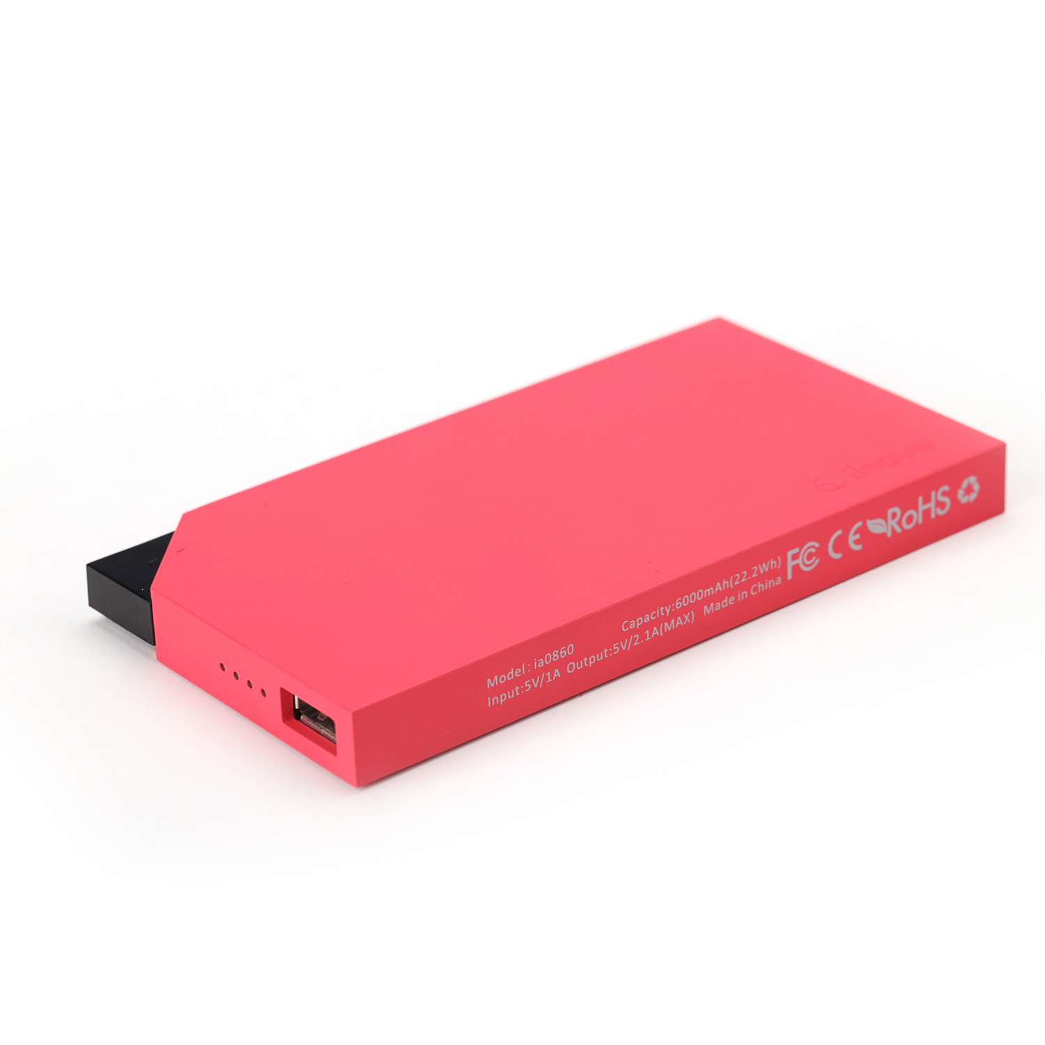 Външна батерия за смартфони и таблети с вграден MicroUSB кабел - iHave Delta Power Bank 6000 mAh (червен)