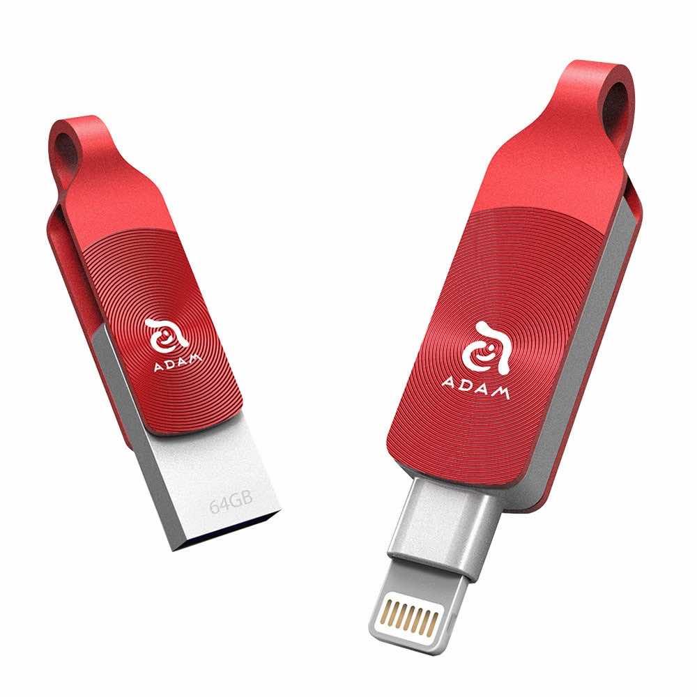 Външна памет за iPhone, iPad, iPod с Lightning (64GB) (червен)  - Adam Elements iKlips Duo Plus Lightning USB 3.1